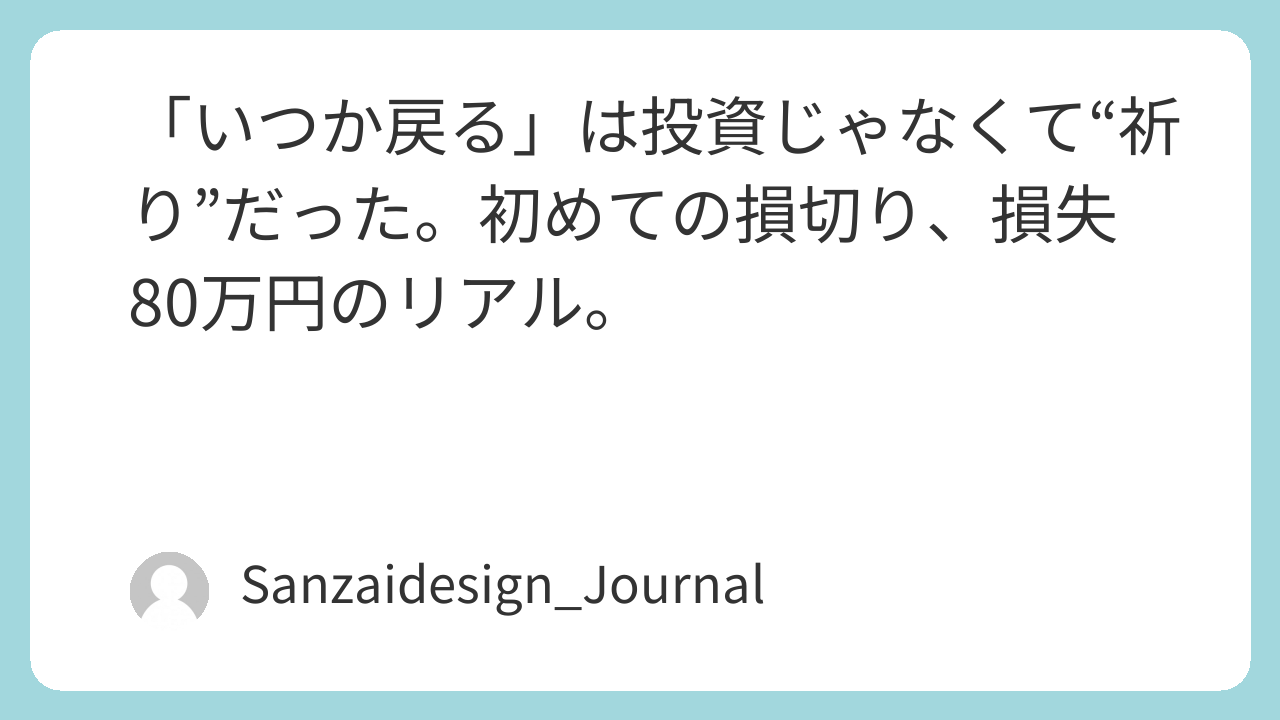 個別株初心者が−40%、損失80万円を確定させた初めての損切り体験。「いつか戻る」と願い続けた3ヶ月と、構造変化を理由に売却を決断したリアルな記録です。