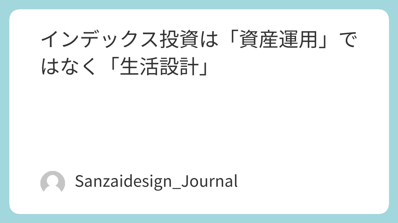 私にとってのインデックス投資は、お金の流れを強制的に固定する装置。「余ったら投資」ではなく「先に投資」して、残ったお金で暮らす。この順番がすべてだと思っています。